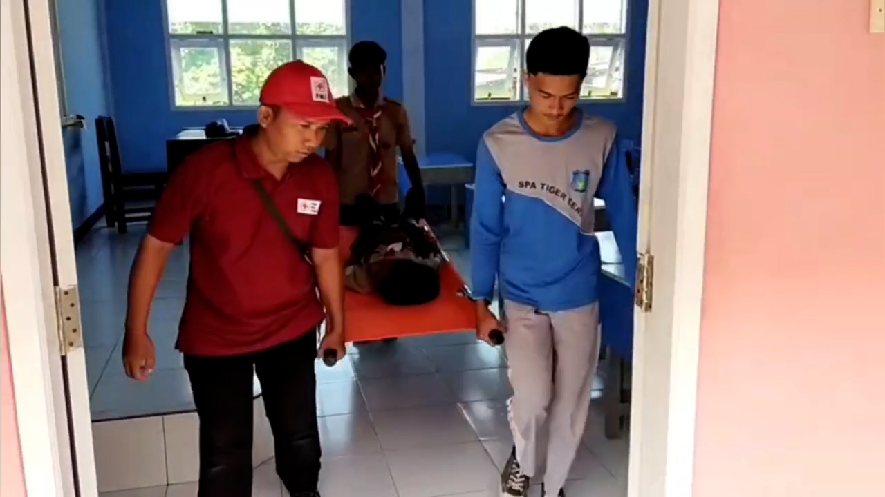 Setelah gempa dinyatakan mereda, seluruh siswa dievakuasi menuju titik kumpul aman dengan mengikuti jalur evakuasi yang telah ditentukan. Dalam simulasi ini juga digambarkan adanya satu siswa yang mengalami luka dan mendapatkan pertolongan pertama oleh tim penanganan.