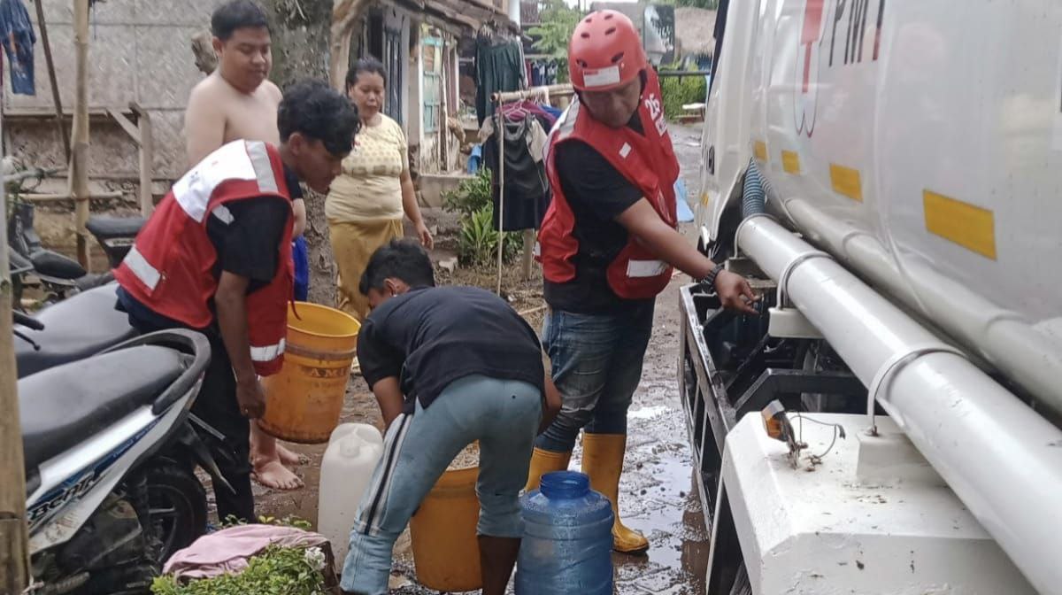 Tak hanya menempatkan tandon, relawan PMI juga membantu warga dengan mengisi air bersih ke galon dan botol bekas air mineral. Bahkan, tandon air milik masjid setempat turut diisi guna mendukung kebutuhan ibadah masyarakat.