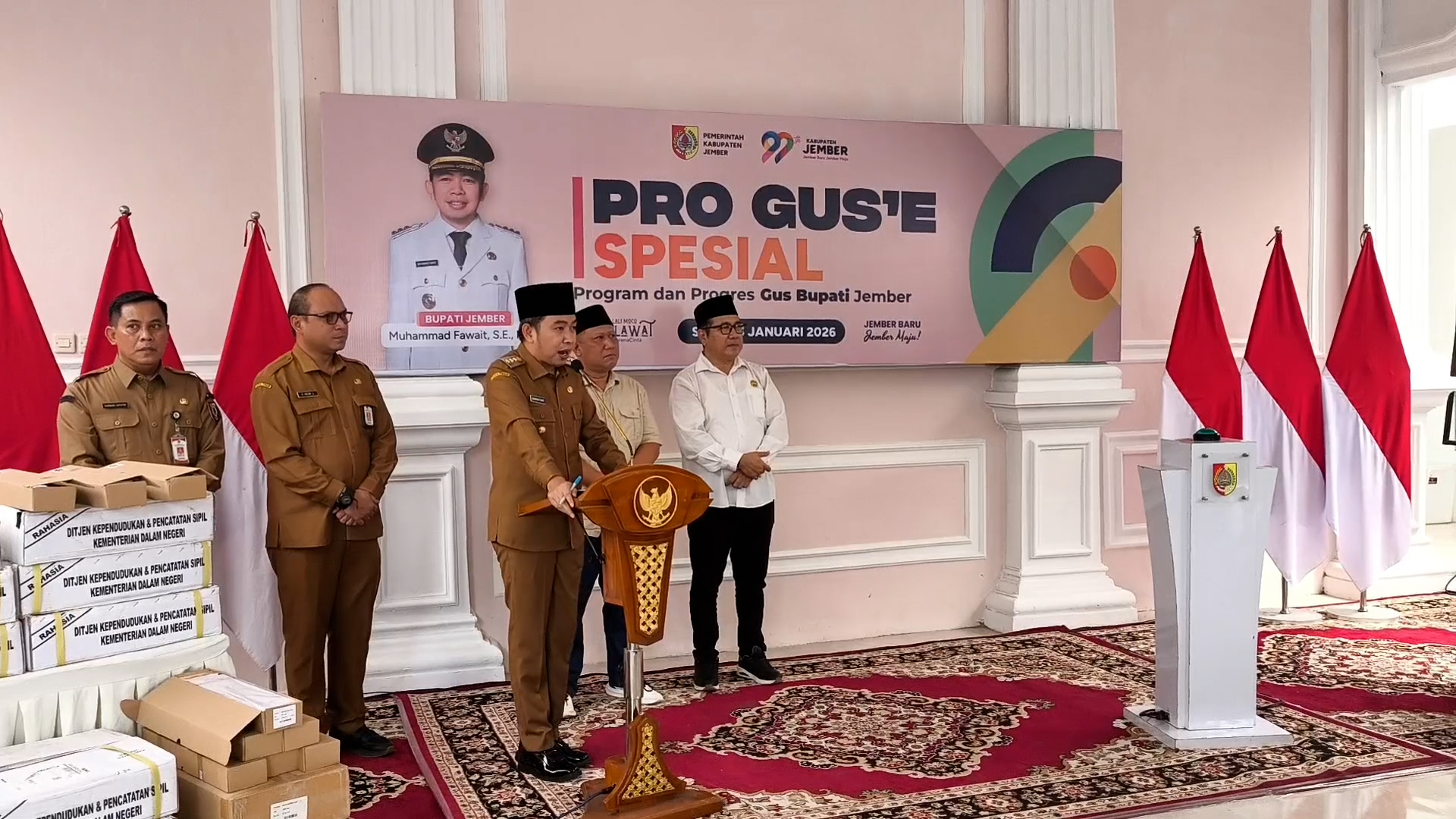 Komitmen tersebut disampaikan Bupati Jember dalam agenda Pro Gus’e Spesial yang digelar di Kantor Kecamatan Jenggawah, Senin (5/1/2026). Dalam kesempatan itu, Gus Fawait menyatakan akan memanggil seluruh pimpinan Organisasi Perangkat Daerah (OPD) untuk menandatangani komitmen percepatan penyerapan anggaran.