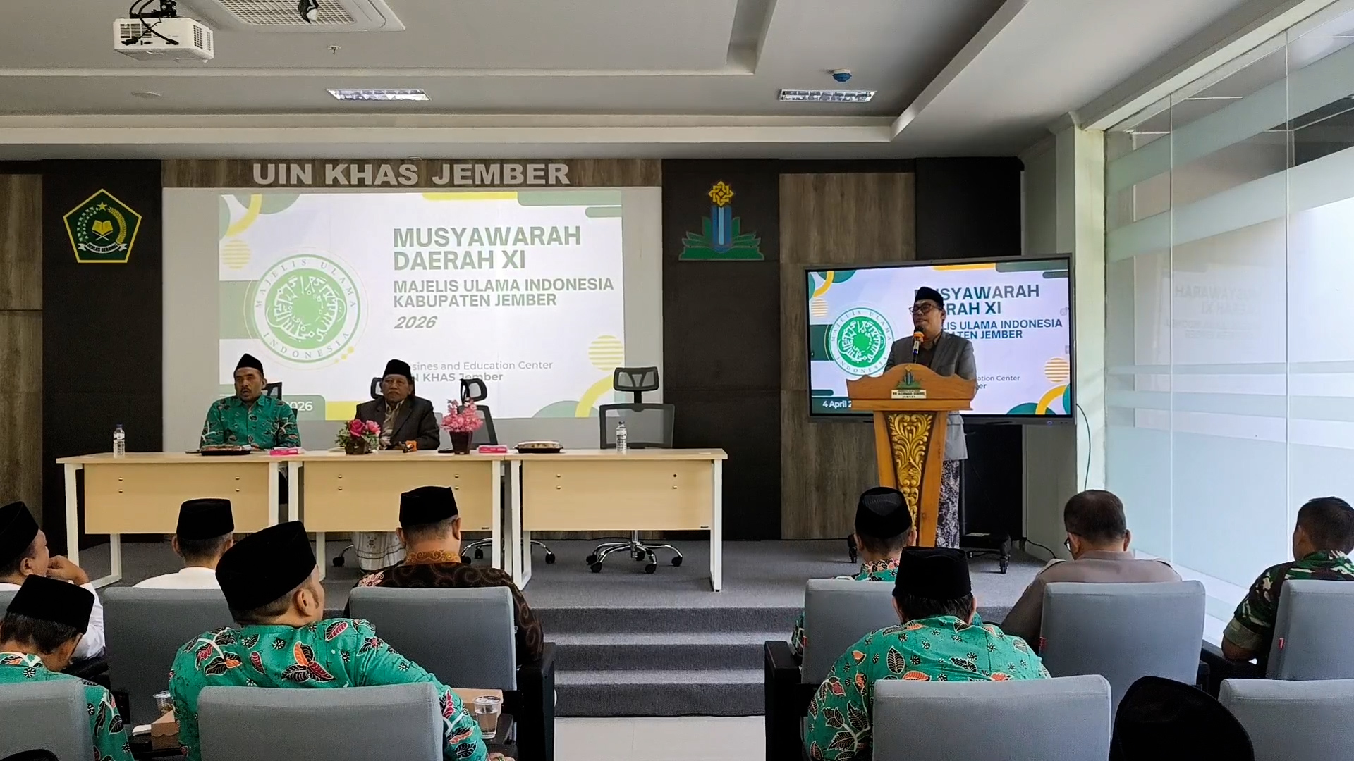 REDAKSIFTV.COM, JEMBER – Majelis Ulama Indonesia (MUI) Kabupaten Jember menggelar Musyawarah Daerah (Musda) di Gedung BEC Universitas Islam Negeri Kiai Haji Achmad Siddiq (UIN KHAS) Jember, Sabtu (4/4/2026). Kegiatan ini menjadi momentum penguatan peran MUI sebagai rujukan utama umat dalam kehidupan beragama.