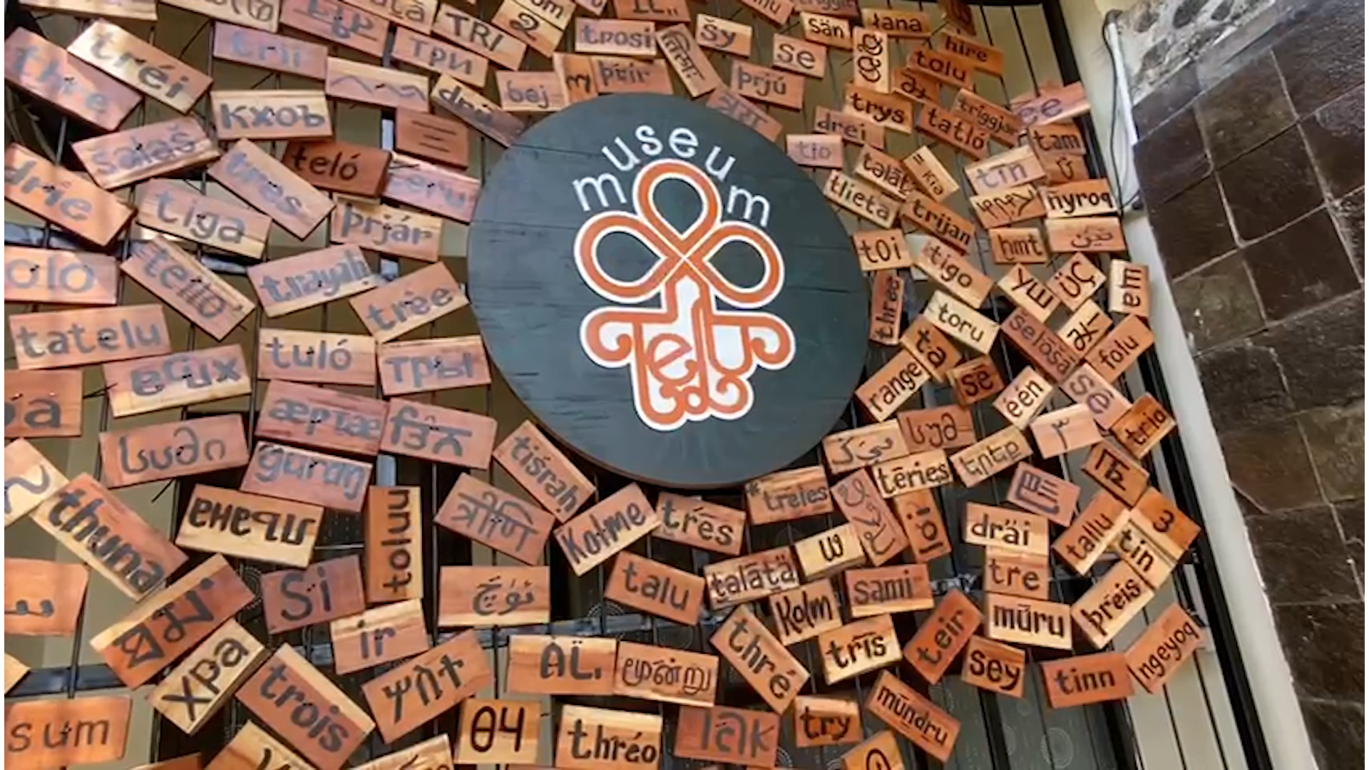 Di bagian depan museum, pengunjung disambut puluhan tulisan kata “tiga” dari berbagai bahasa dunia. Elemen tersebut menjadi identitas visual Museum Telu sekaligus simbol filosofi Cipta, Rasa, dan Karsa yang menjadi dasar konsep museum.