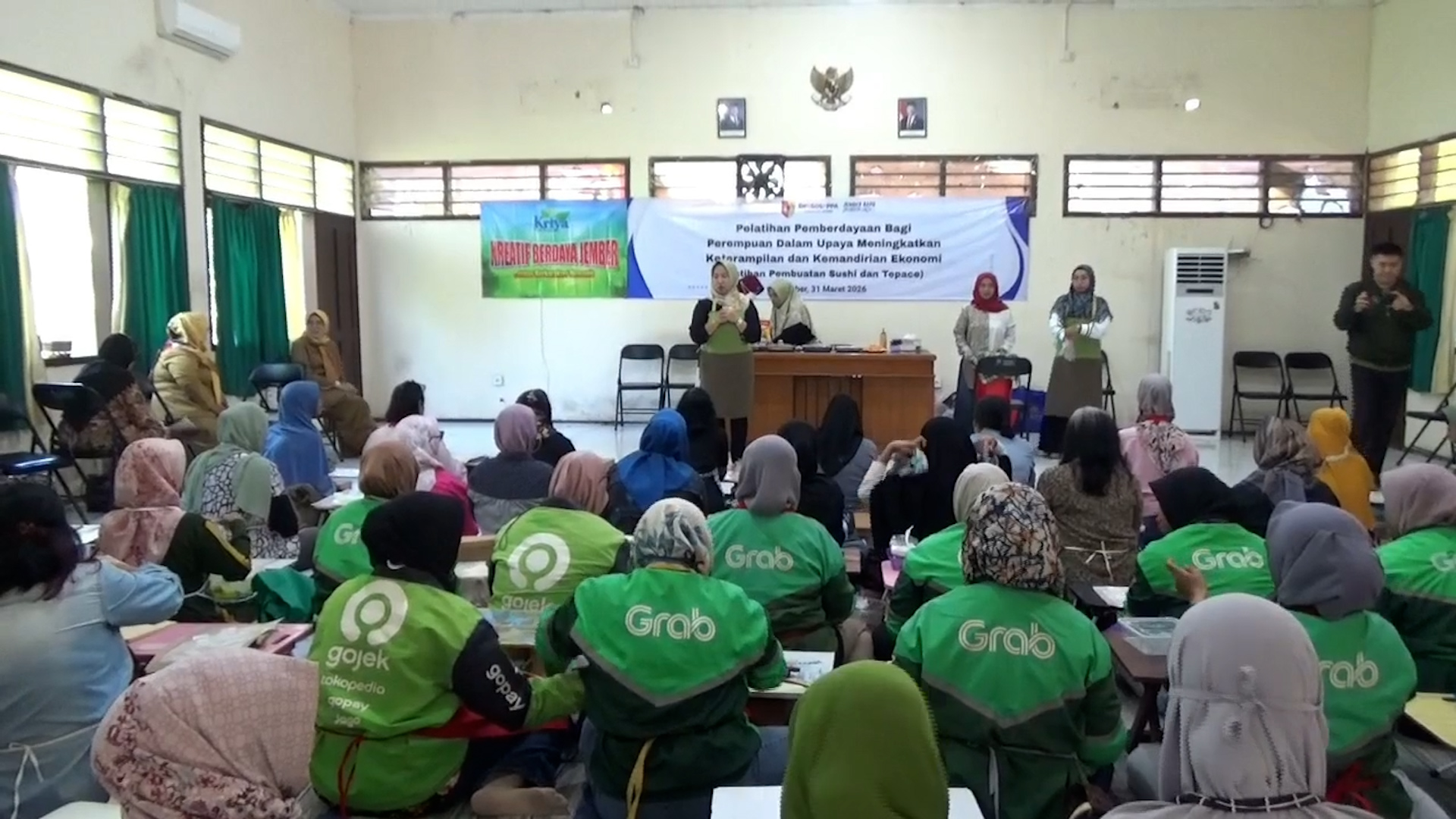 REDAKSIFTV.COM, JEMBER – Puluhan pengemudi ojek online (ojol) perempuan di Jember mendapat pelatihan kuliner unik yang digelar Dinas Sosial, Pemberdayaan Perempuan dan Perlindungan Anak (DinsosPPPA) Jember, Selasa (31/3/2026). Dalam pelatihan ini, peserta diajarkan membuat kudapan asal Jepang, sushi, serta minuman khas Meksiko, tepace, yang dikemas dengan sentuhan lokal.
