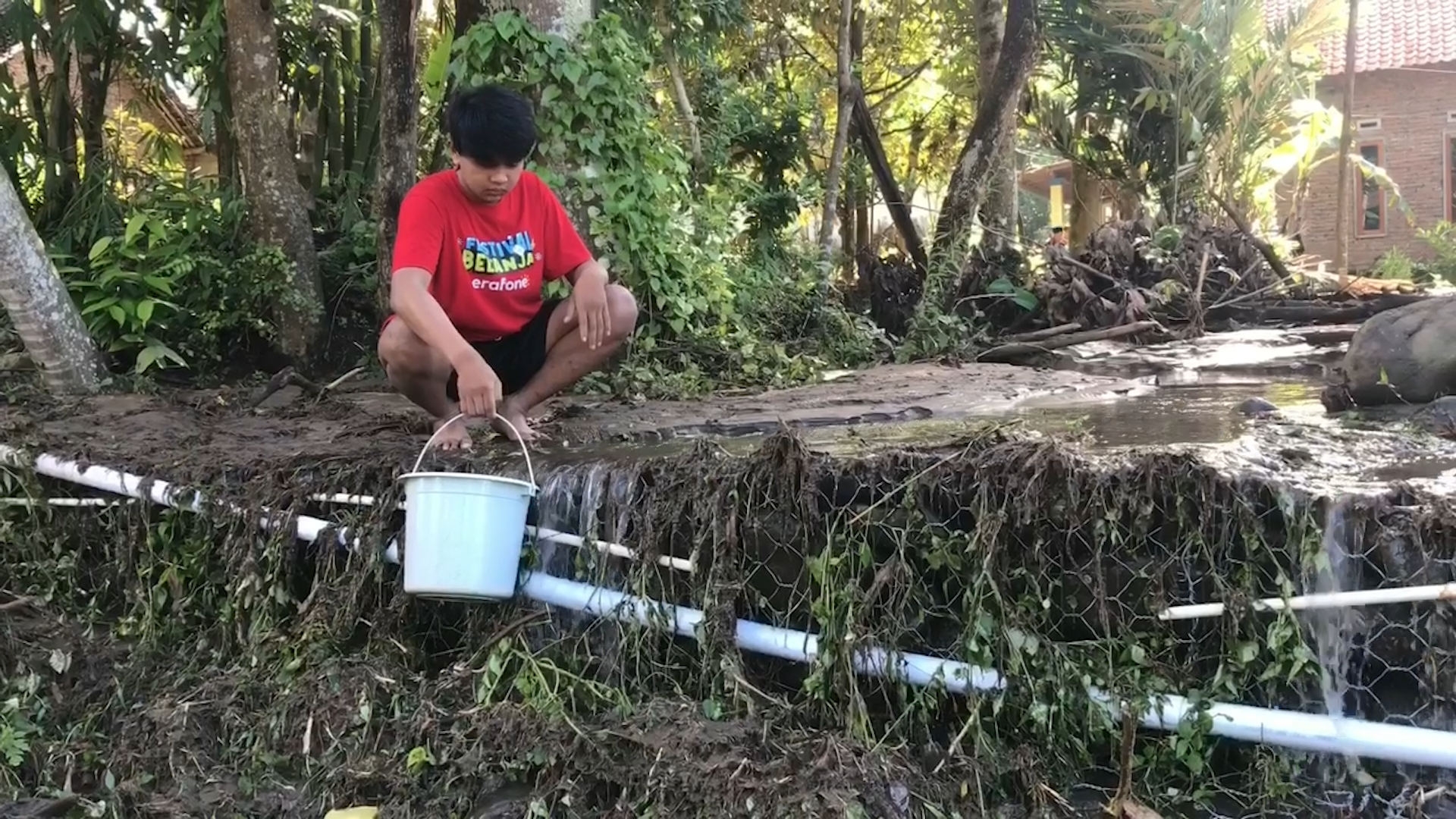 Akibat terputusnya saluran tersebut, warga kesulitan memenuhi kebutuhan air sehari-hari. Sebagian warga bahkan terpaksa mengambil air dari selokan untuk membersihkan sisa lumpur yang merendam rumah mereka.