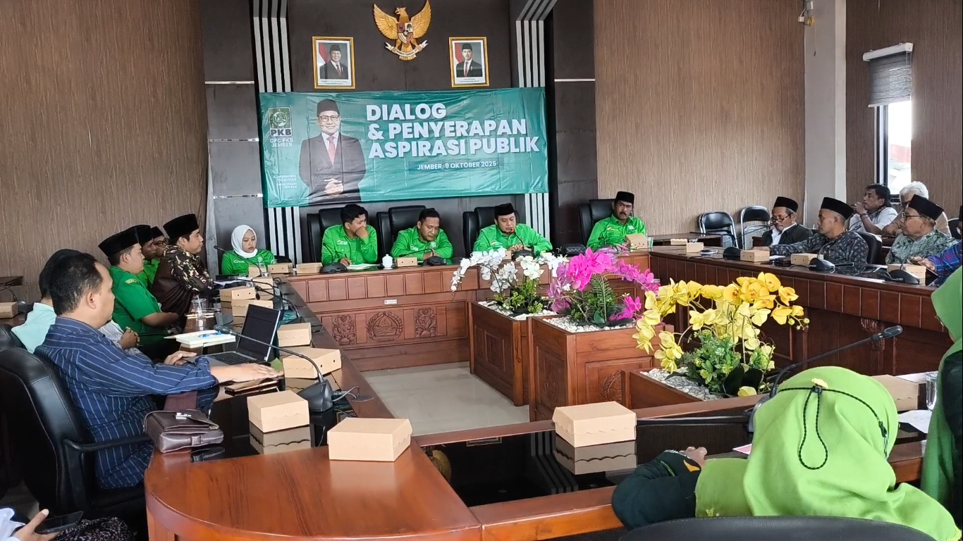 REDAKSIFTV.COM, JEMBER – Dewan Pimpinan Cabang (DPC) dan Fraksi Partai Kebangkitan Bangsa (PKB) Kabupaten Jember menggelar dialog publik dan penyerapan aspirasi masyarakat di Aula Lantai 3 Kantor DPRD Jember, Kamis (9/10/2025).