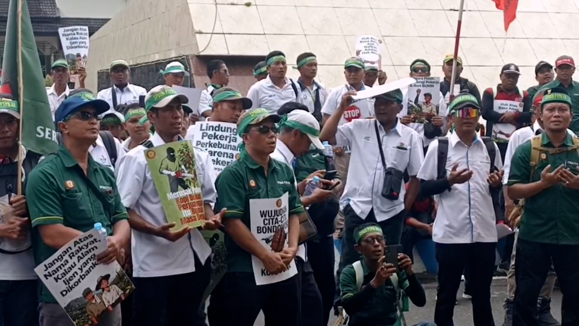 Dalam aksi tersebut, massa membentangkan spanduk dan poster berisi tuntutan. Mereka mendesak Forum Koordinasi Pimpinan Daerah (Forkopimda) Bondowoso segera turun tangan untuk menyelesaikan persoalan yang terjadi serta menjamin keamanan dan kenyamanan para pekerja perkebunan.