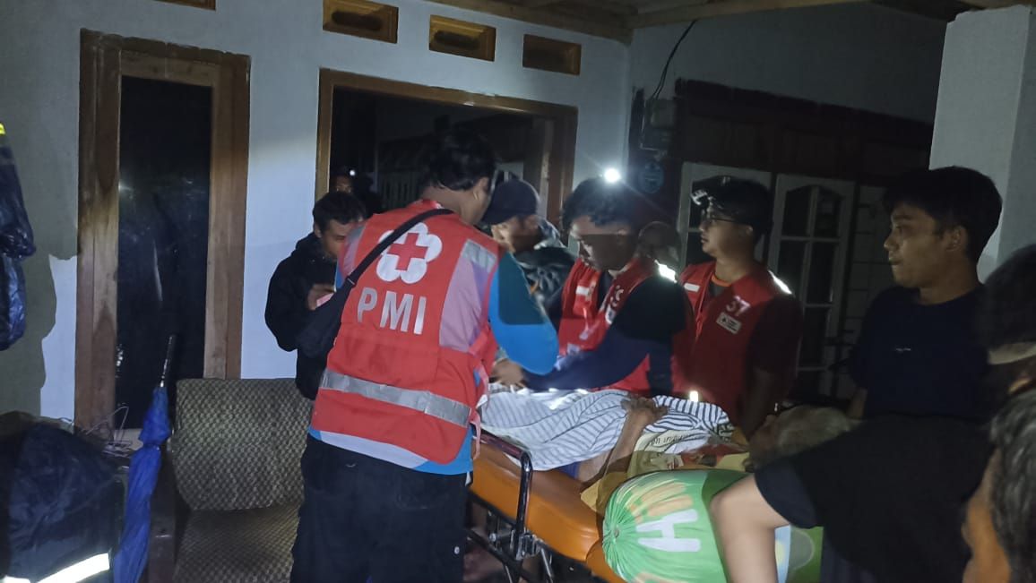 Luapan air sungai yang terus meninggi membuat warga terjebak di dalam rumah. Relawan Palang Merah Indonesia (PMI) Kabupaten Jember bergerak melakukan evakuasi pada dini hari.