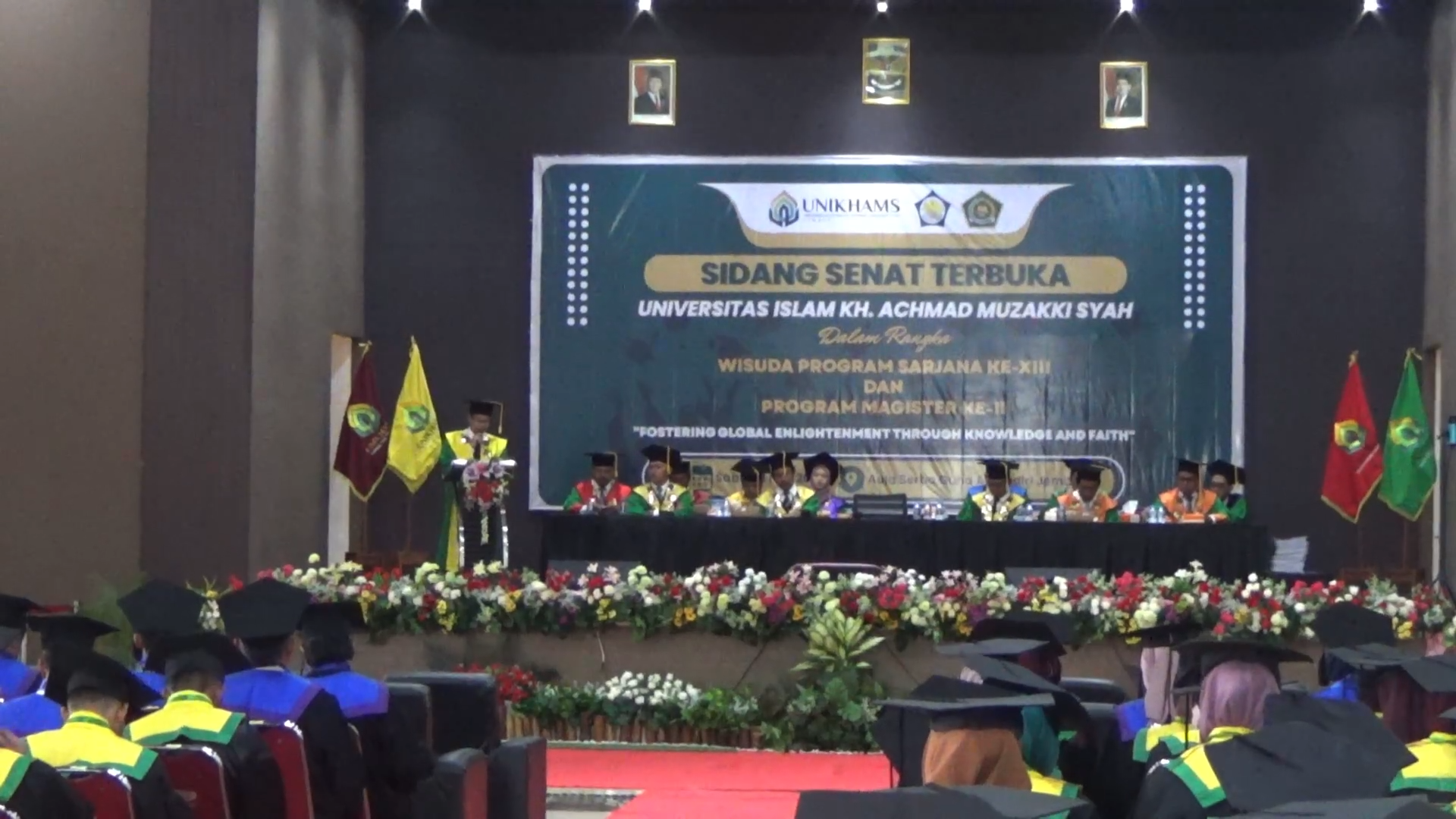 REDAKSIFTV.COM, JEMBER – Universitas Islam Kiai Haji Ahmad Muzakki Syah (UNIKHAMS) Jember menggelar wisuda Program Sarjana ke-13 dan Program Magister ke-2 di Aula Utama kampus setempat, Sabtu (8/11/2025). Momen ini menjadi bersejarah karena merupakan wisuda perdana sejak kampus tersebut resmi menyandang status sebagai universitas.