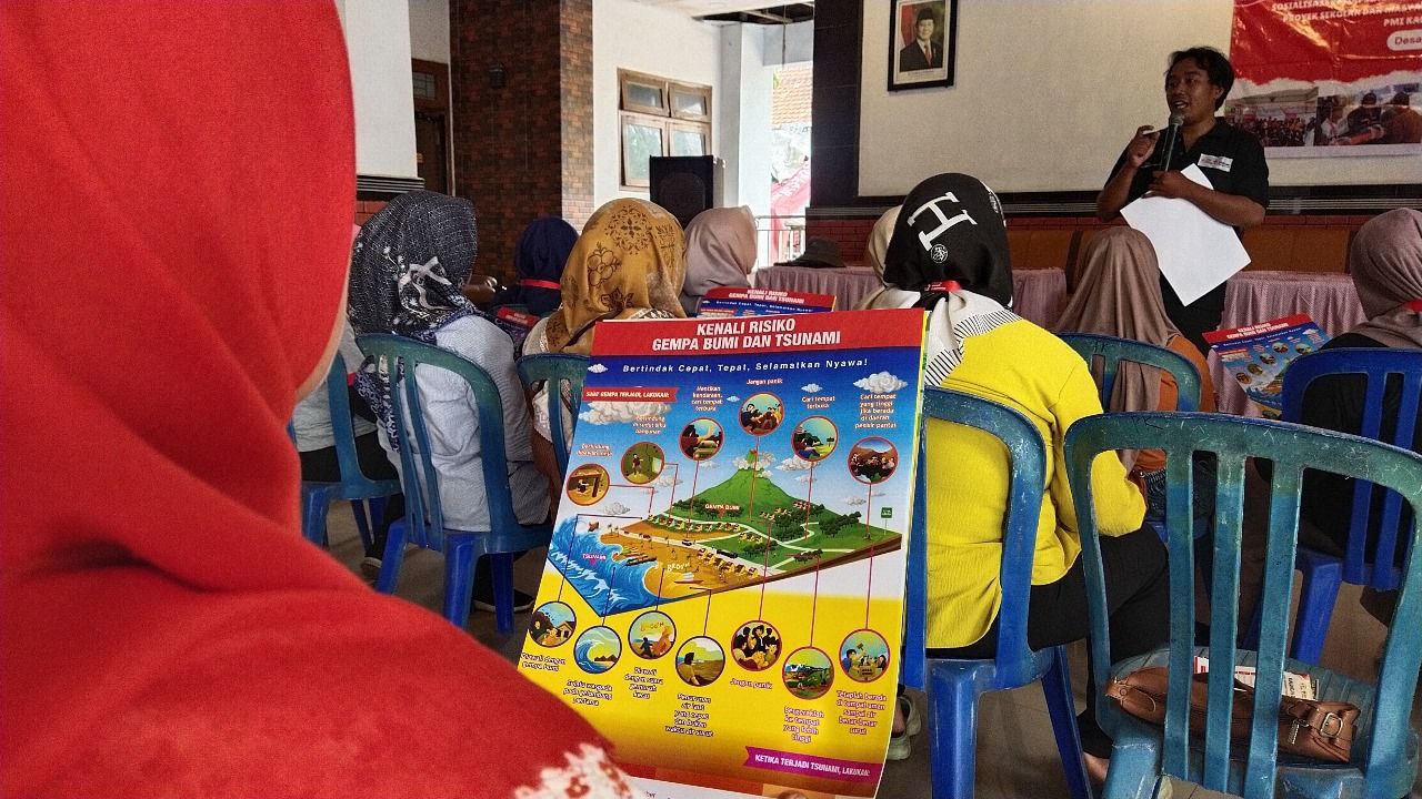 REDAKSIFTVJEMBER.COM. Jember — Ancaman bencana di pesisir selatan Jawa, khususnya tsunami, menjadi perhatian dalam sosialisasi kesiapsiagaan yang digelar PMI bersama JRCS (Japanese Red Cross Society) di Balai Desa Puger Kulon, Kecamatan Puger, pada Jumat pagi (21/11/2025).